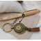 Geschenkbeutel, der einen Holzkugelschreiber enthält, der durch Gravur personalisiert wird, ein Lederarmband in der Farbe Ihrer Wahl, das Sie anpassen können, wenn Sie es durch Gravur wünschen + ein Schlüsselanhänger aus Messing vielli mit Cabochon gousset: ideal für eine Frau oder ein Paar.