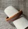 Une manchette femme en cuir aux couleurs orange,beige et doré, et composée de 3 lacets en cuir .