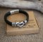 Dieses Armband aus schwarzem, geflochtenem Leder ist im keltischen Stil gehalten und mit einer Schleife aus altsilbernem Metall verziert. Es wird mit einem wunderschönen Schiebe- und Magnetverschluss aus gebürstetem Stahl geschlossen. Abmessungen des Leders: Breite 12 mm, Dicke 6 mm. Das Armband wurde für ein durchschnittliches Männerhandgelenk von 18 cm hergestellt, d. h. eine Gesamtlänge von 20,5 cm.