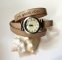 Damenuhr aus europäischem Leder mit bronzefarbenem Zifferblatt, die mit einer eingravierten Nachricht personalisiert werden kann.